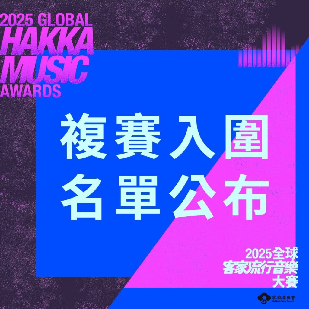 最新消息 News 🔥 𝟐𝟎𝟐𝟓 全球客家流行音樂大賽🌍 𝟐𝟎𝟐𝟓 𝐆𝐥𝐨𝐛𝐚𝐥 𝐇𝐚𝐤𝐤𝐚 𝐌𝐮𝐬𝐢𝐜 𝐀𝐰𝐚𝐫𝐝𝐬 2025 年 10 月 27 日 「2025全球客家流行音樂大賽」總獎金105萬元,廣邀全球音樂人共襄盛舉!三金製作人柯智豪任評審總召;陳芳語三喜臨門:發新專輯、年底專場與推客語單曲計畫! 2025 年 7 月 22 日 第36屆金曲客語音樂入圍風格豐富精彩 2025 年 6 月 27 日 更多最新消息